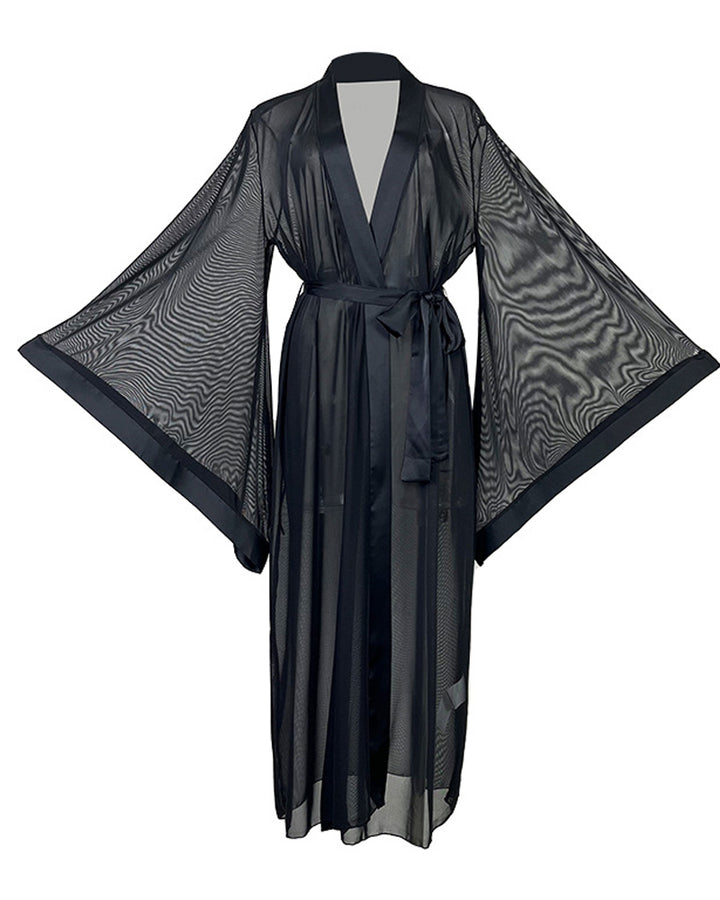 Indulge in luxurious lounging with this sensual mesh cardigan robe. The delicate sheer fabric and adjustable tie-front design offer a flattering, customizable fit. Perfect for relaxing at home or adding a touch of allure to your downtime, this piece combines comfort with effortless elegance.