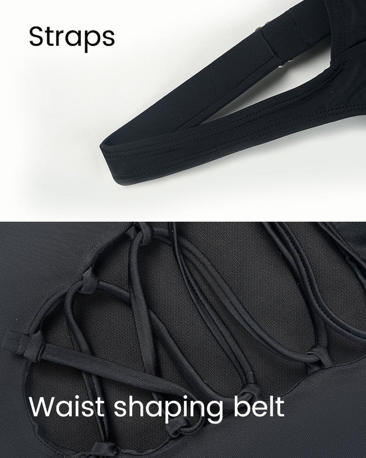 Badeanzug mit quadratischem Ausschnitt, Schnürung am Rücken und formender Wirkung