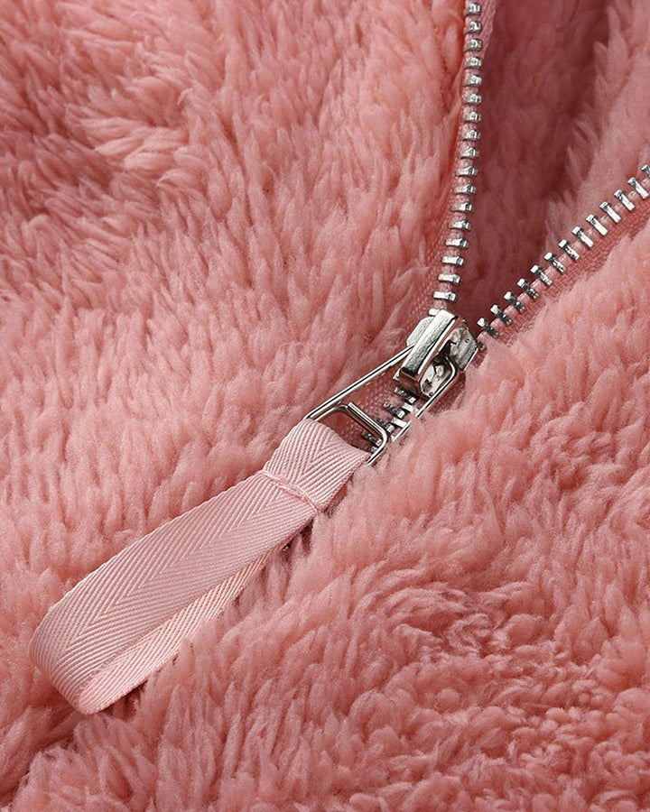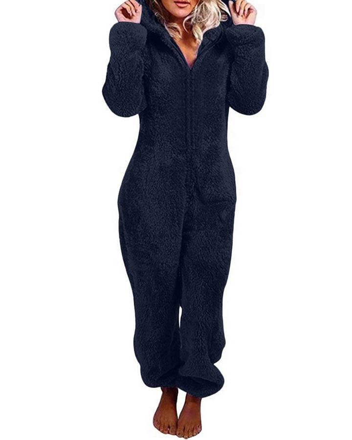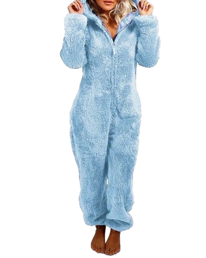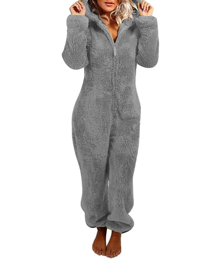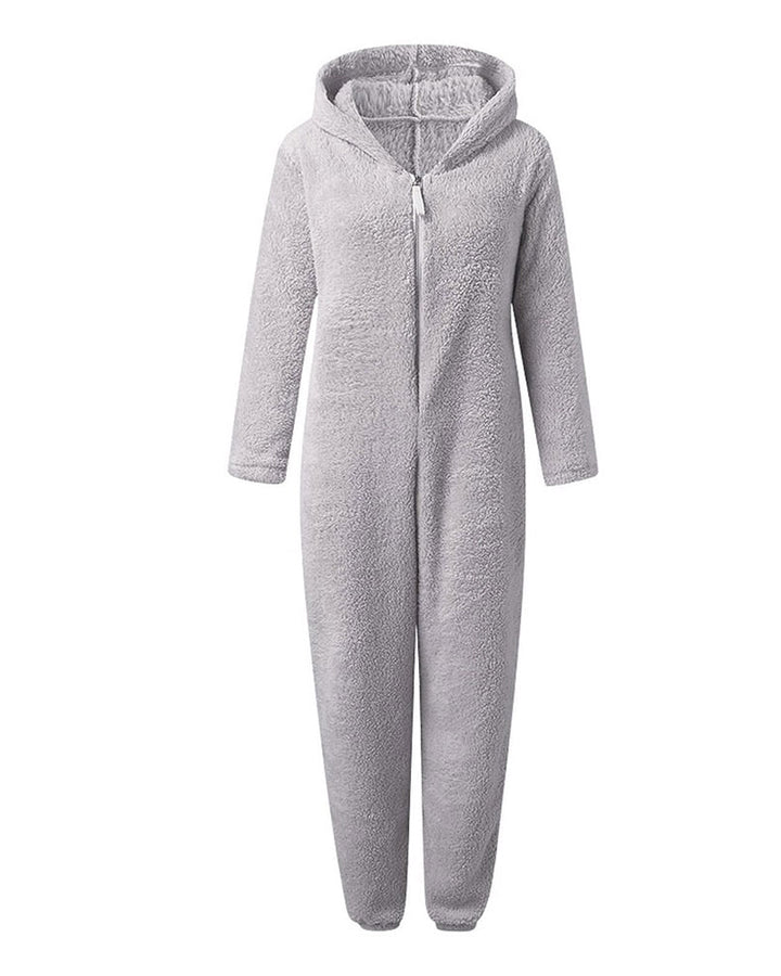 Teddy Bear Ear Zipper Hooded Plush Long-Sleeved Pants Onesie Pajamas