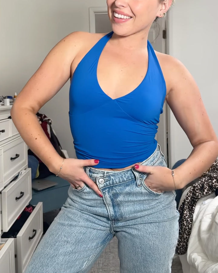 Damen V-Ausschnitt Ärmelloses Rückenfreies Neckholder Nahtloses Top
