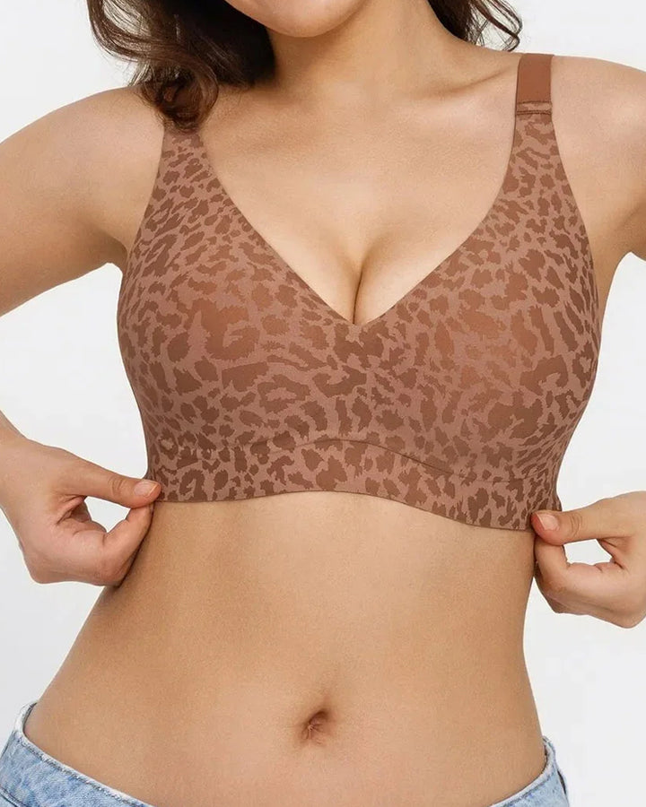 Leopard Print Wire-Free Comfortable Push-Up Seamless T-Shirt Bra