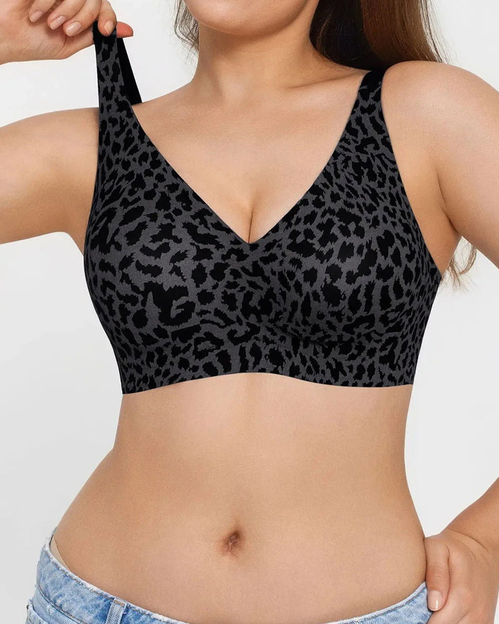 Experience the perfect blend of style and comfort with this leopard print seamless bra. Designed without wires yet offering gentle push-up support, it features molded cups and a wider underband for all-day ease. The buttery-soft fabric and adjustable cross-back straps ensure a secure, invisible fit under any outfit.