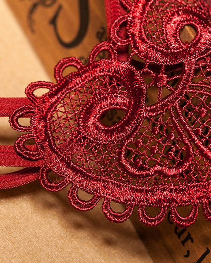 Sexy Heart-Shaped Lace Flower Pearl Embellished Thong