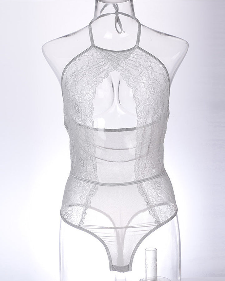 Sexy Lace Mesh Openwork Halter Bodysuit