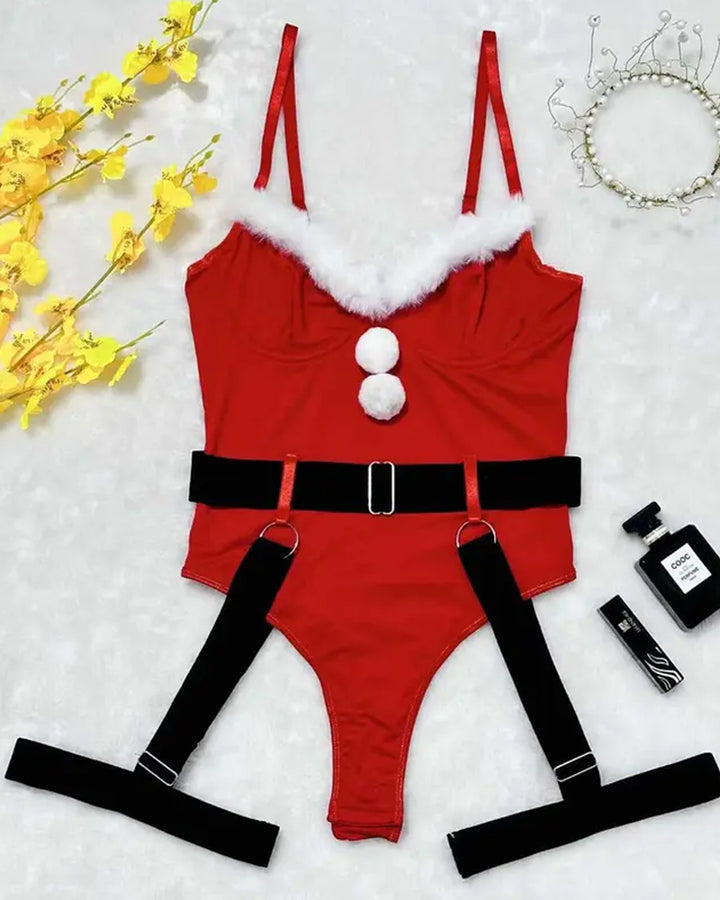 Complete Set: Includes teddy lingerie with attached garter and decorative belt