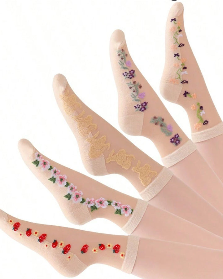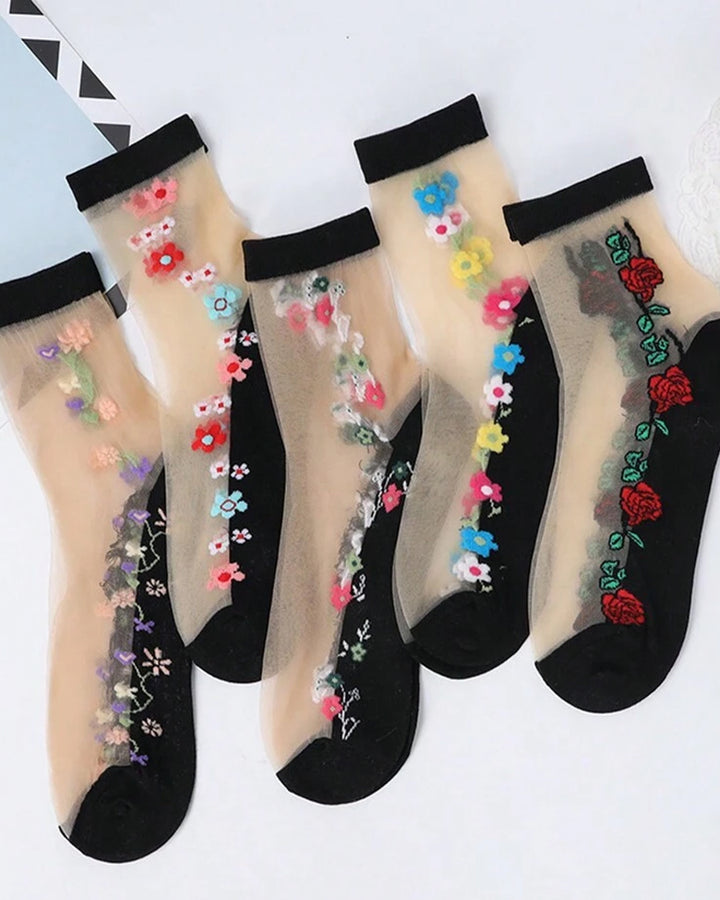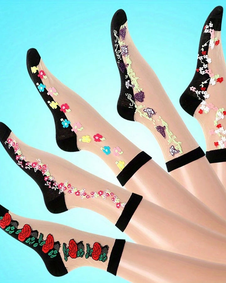 Lot de 5 paires de chaussettes jacquard florales pour femmes