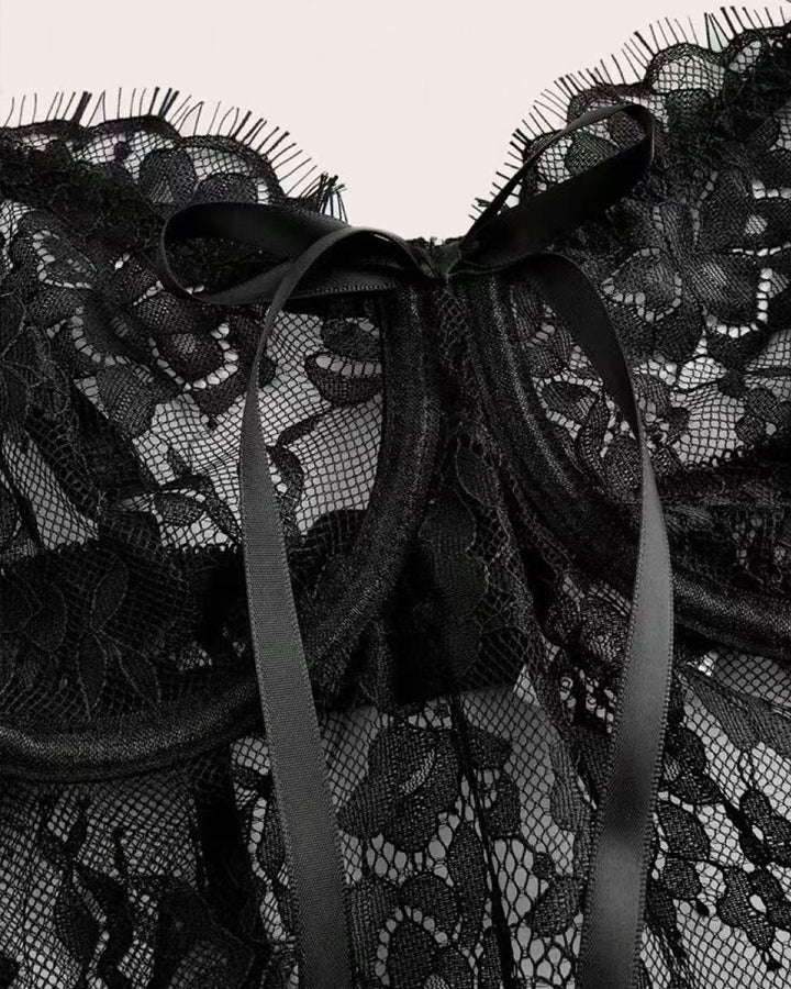 Sexy Floral Lace Mesh See-through Long Camisole Nightgown