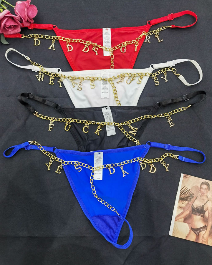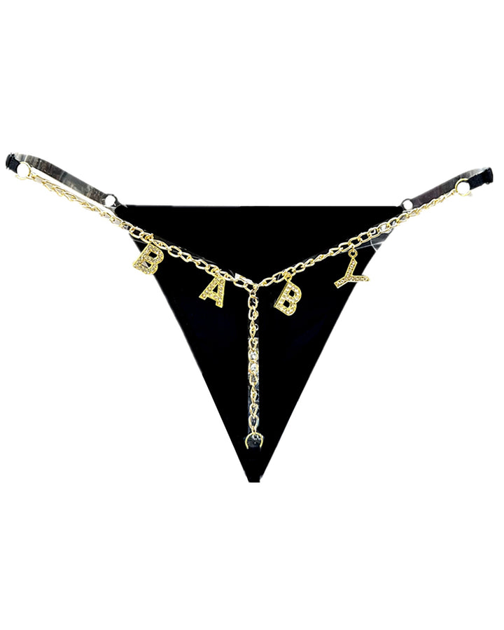 Attirez l’attention avec nos strings à chaîne avec lettres en strass dorés éblouissants – la pièce maîtresse ultime pour une confiance audacieuse ! Conçus pour mettre en valeur vos courbes avec une touche luxueuse, ces strings sexy présentent des lettres en strass scintillantes et de délicats détails en chaîne dorée qui ajoutent une touche de séduction haute couture. Parfaits pour les moments intimes, les séances boudoir ou pour apporter un accent audacieux sous vos tenues.