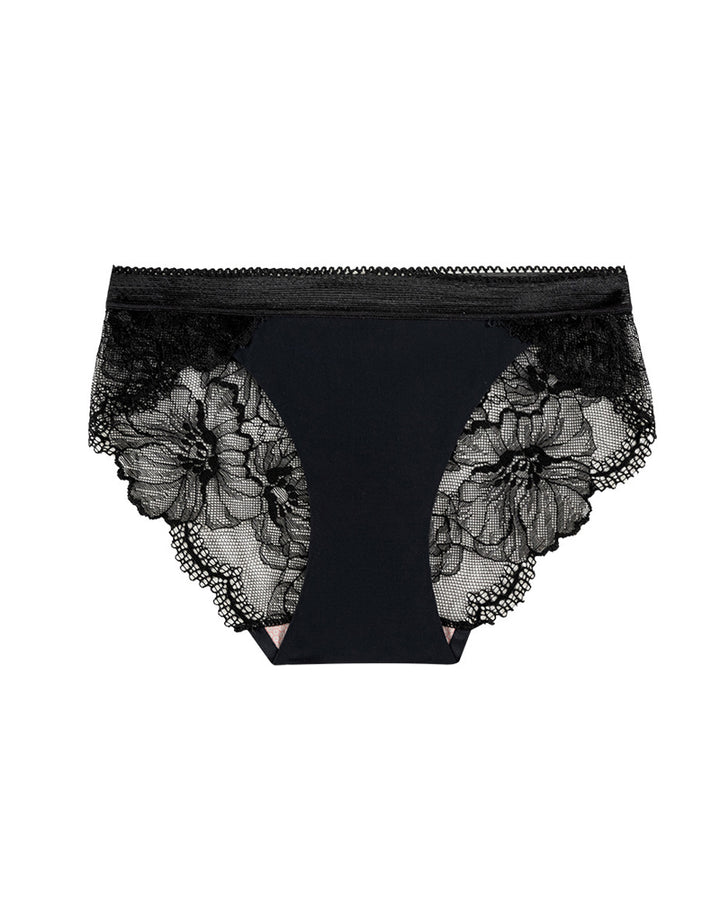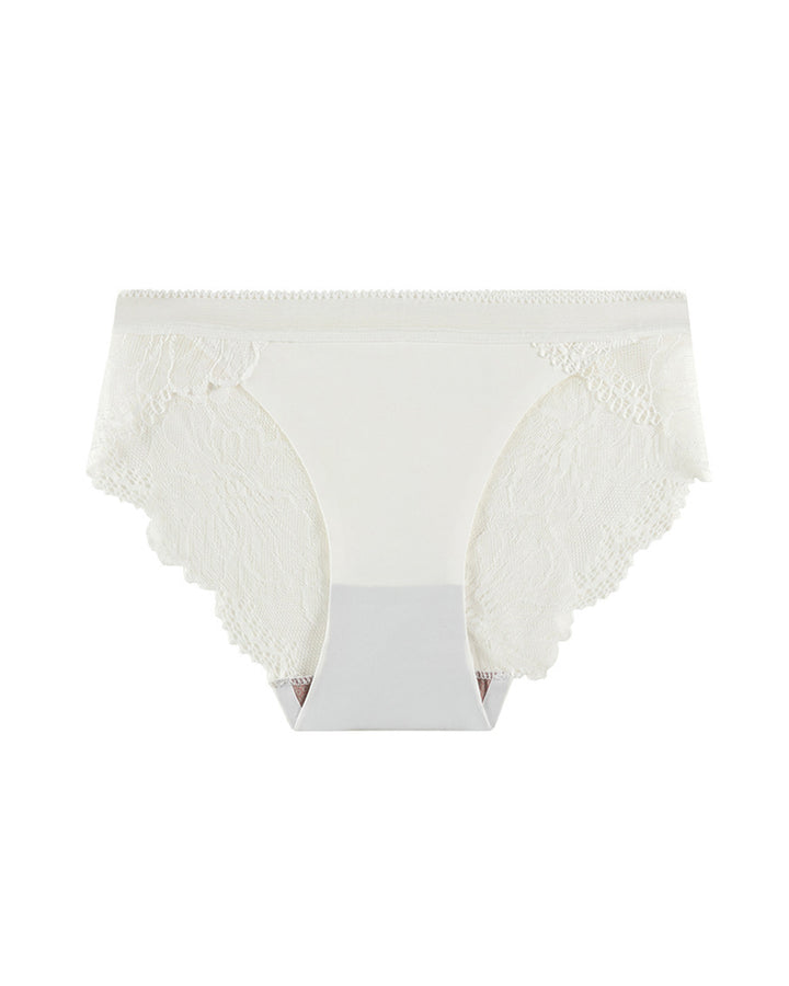 Culotte sexy taille moyenne en soie glacée, sans couture, avec dentelle ajourée et entrejambe en coton respirant