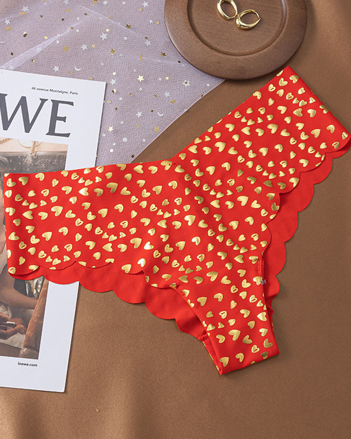 Culottes sexy sans couture en soie glacée avec imprimé cœur et étoile