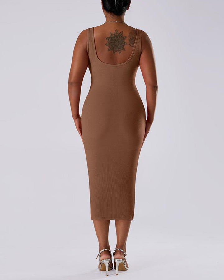 Détails du produit : Robe longue sans manches unie avec gaine intégrée pour affiner la taille et relever les hanches