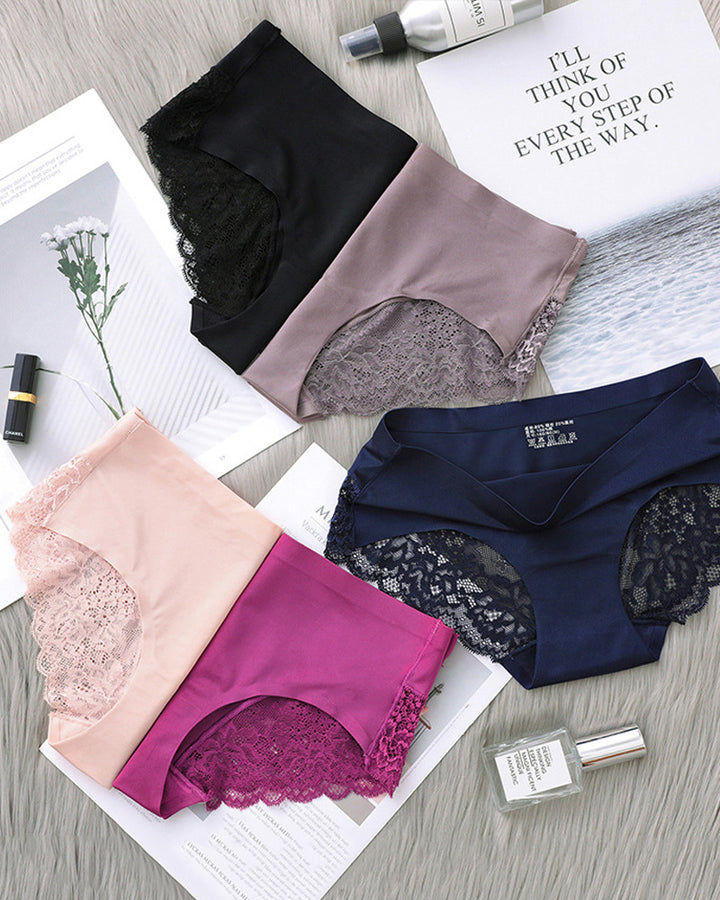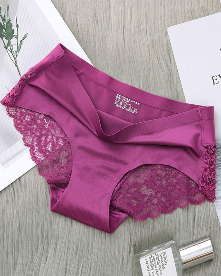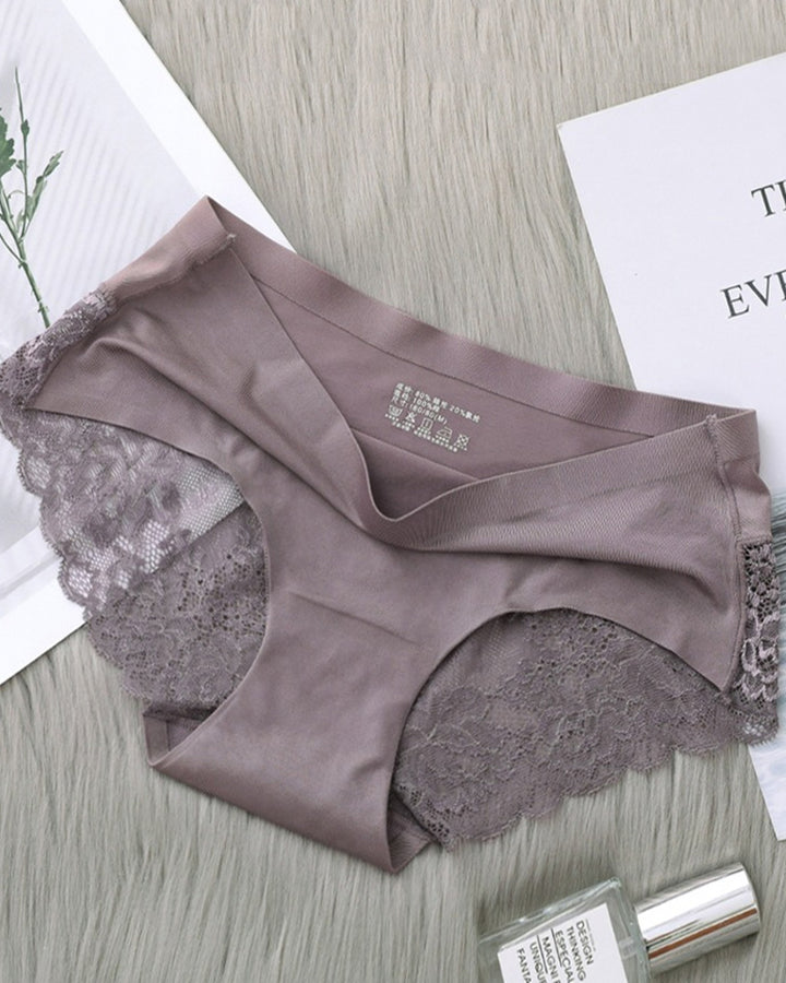 Culottes basses sans couture en dentelle en soie glacée pour femmes - Sous-vêtements sexy et confortables au quotidien