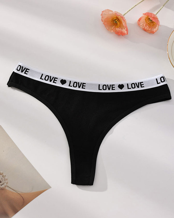 String taille basse en coton pour femme avec lettrage en forme de cœur bicolore