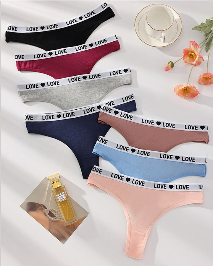 Ajoutez une touche de charme espiègle à votre tiroir à sous-vêtements avec ces adorables strings taille basse ! Dotés d'un design colorblock tendance et d'un détail d'inscription « love » tout doux, ces slips en coton allient confort et ambiance féminine coquette. Le mélange parfait de style et de simplicité pour un port toute la journée.