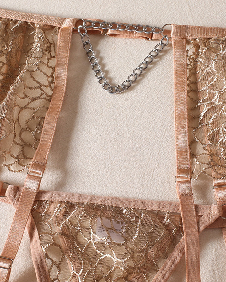 Sexy Jacquard See-Through Mesh with Chain Decoration Fun Lingerie Set