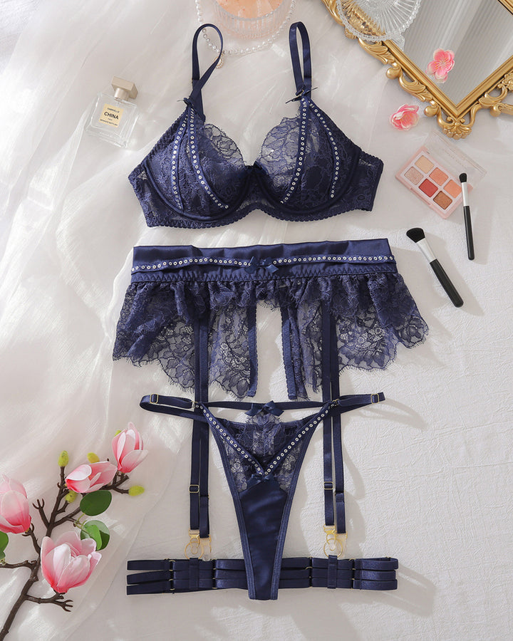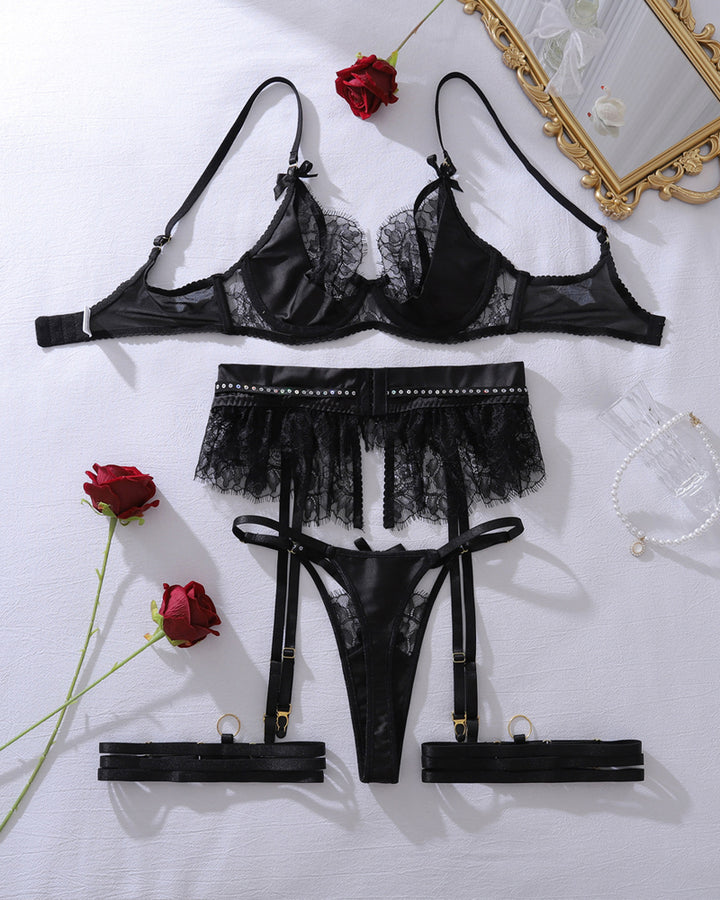 Sexy Lace Hollow See-Through Gathered Lingerie Set