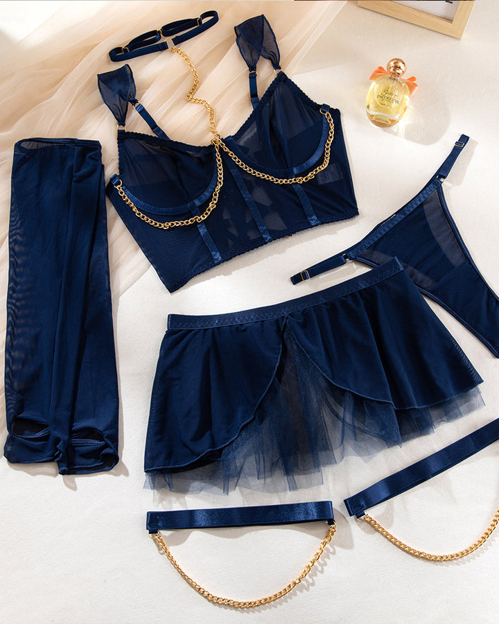 Sexy See-Through Mesh Skirt Uniform Lingerie Set With Gloves