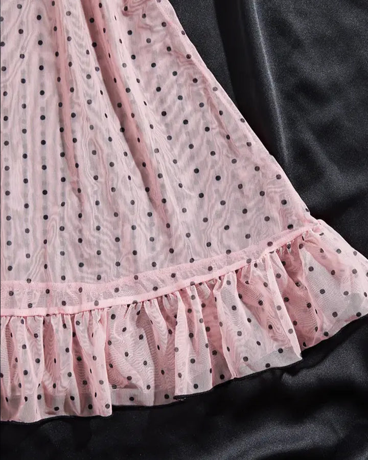 ✔ Playful Polka Dot Print – Retro-inspired dots on semi-transparent fabric for teasing appeal