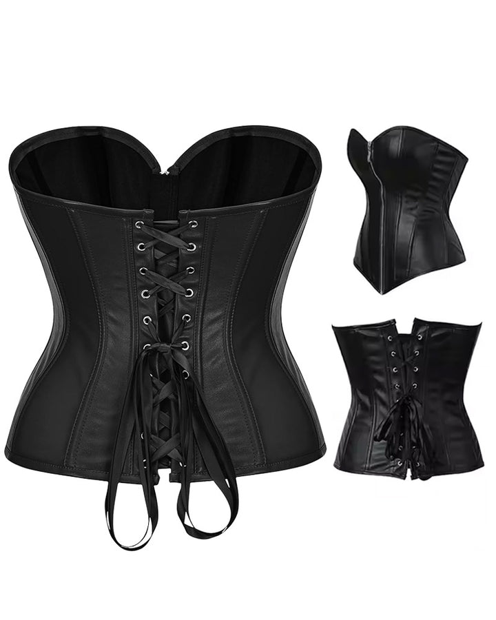 This steel-boned faux leather corset is designed to cinch your waist and create a dramatic hourglass silhouette—perfect as shapewear under clothes or as a bold standalone piece for a seductive, edgy look.