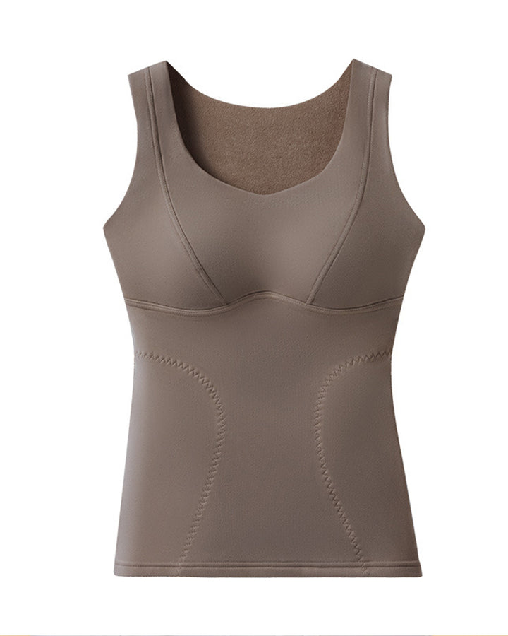 Silk Patch Fleece-Lined Fixed Cups Wire-Free Comfortable Warm Vest