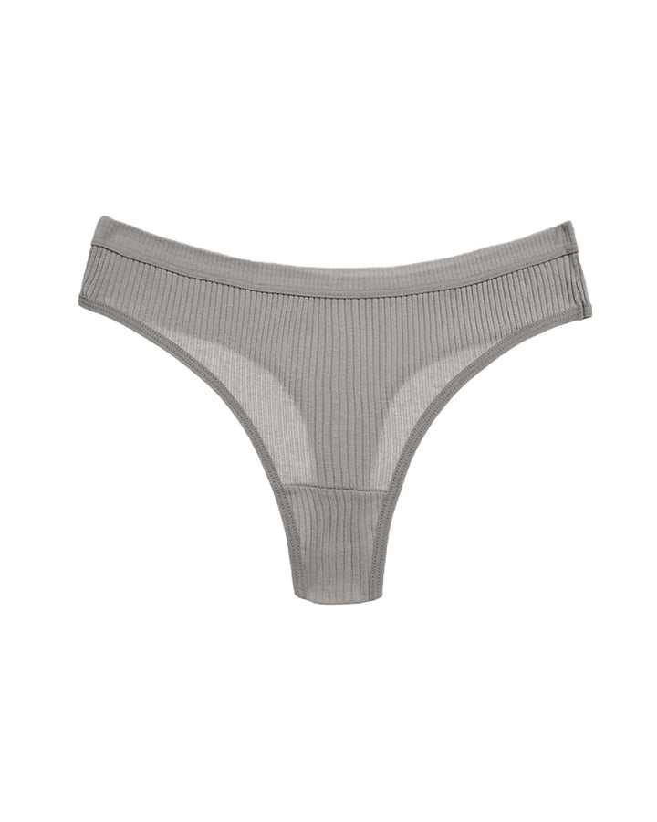 Solid Color Ribbed Knit Sexy Thong Briefs