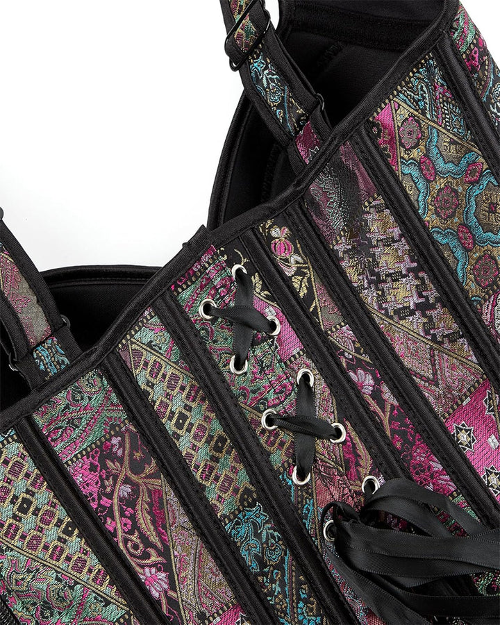 Women’s Vintage Jacquard Lace-Up Corset Bodysuit – Waist Trainer & Steampunk Fashion