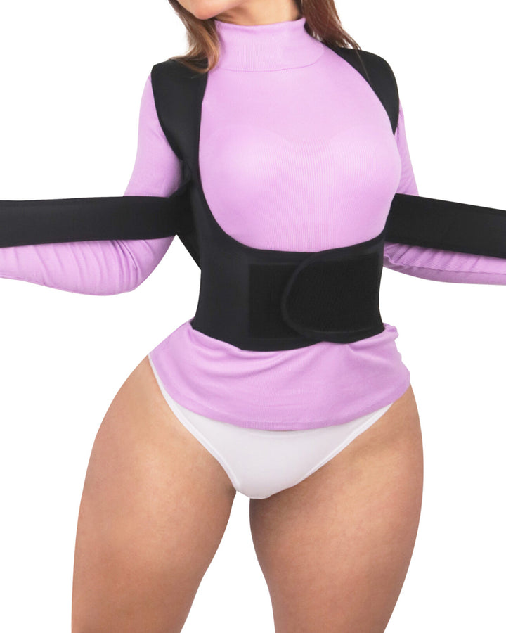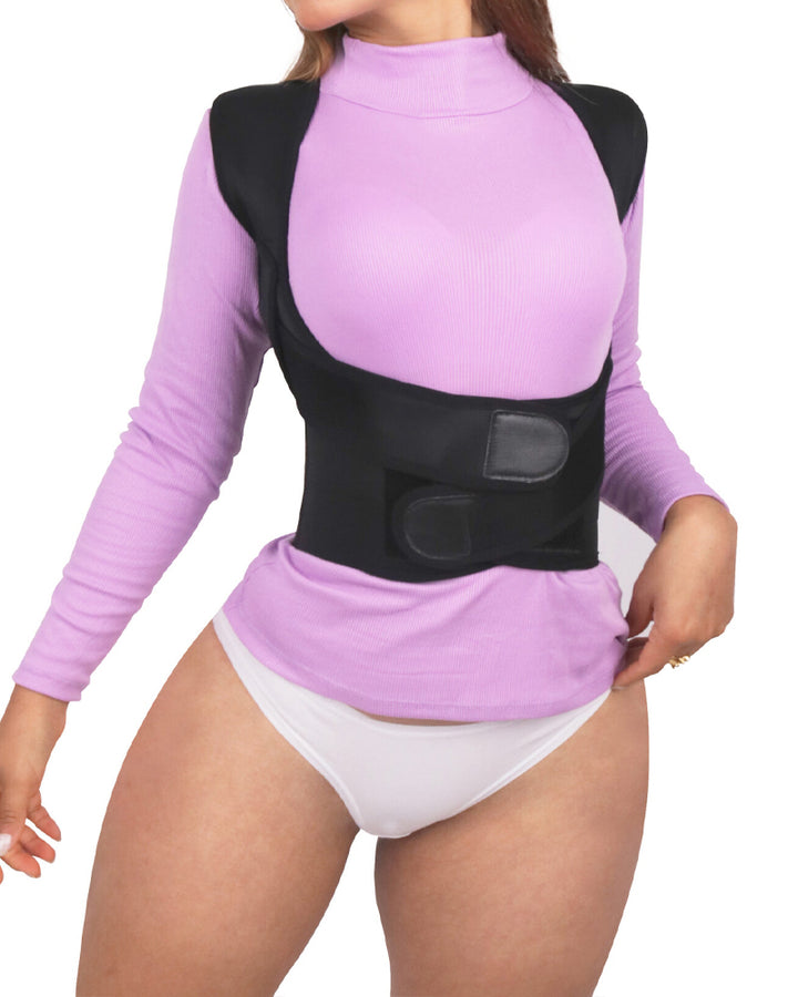 Comfortable Support: Breathable fabric with flexible boning for posture correction