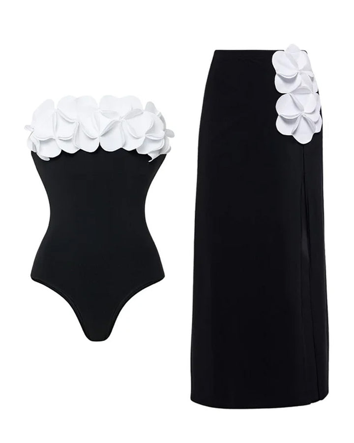 Fato de banho e saia de uma peça com flor 3D e bandeau