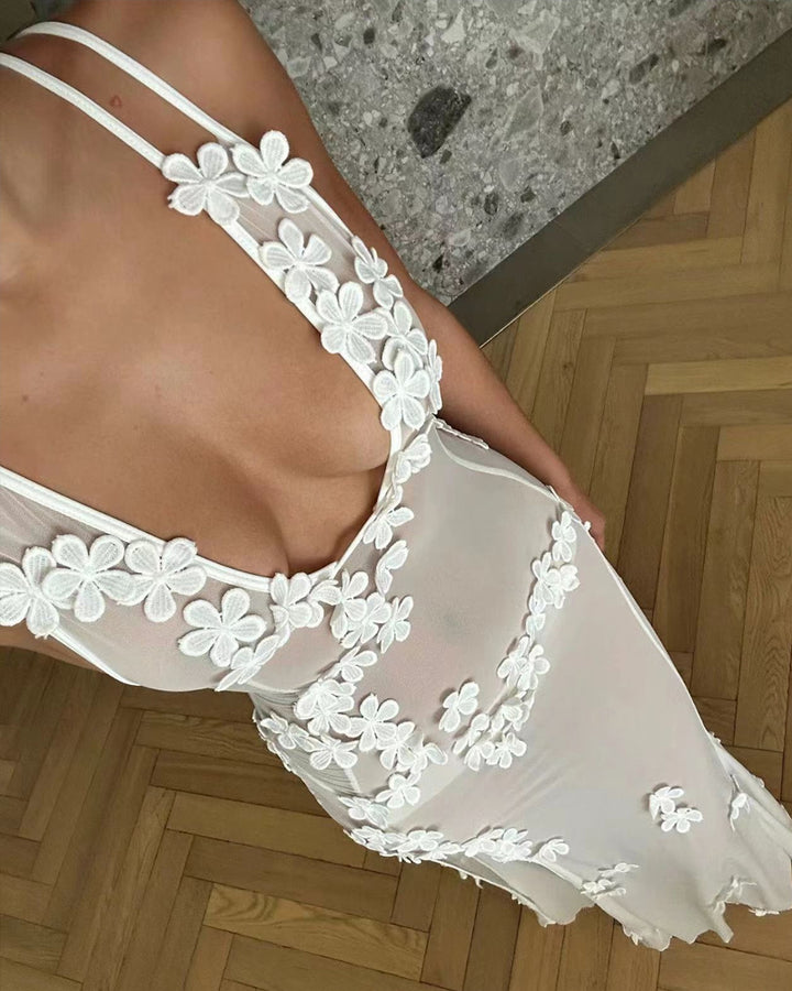 Beach Sexy Halter Bikini and 3D Floral Long Sundress