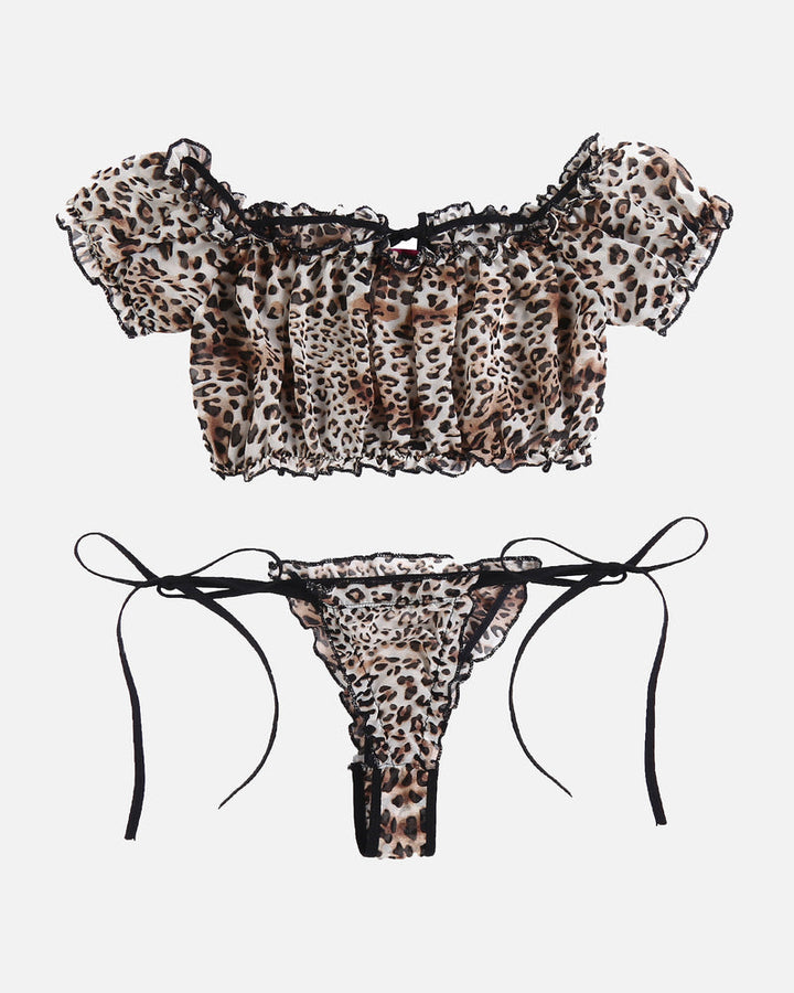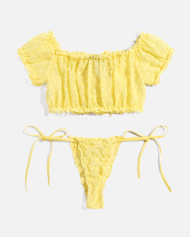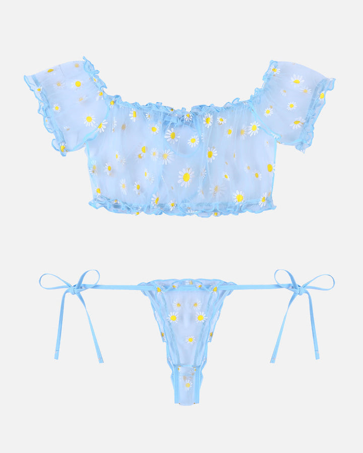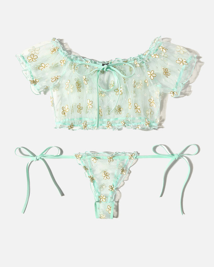 Conjunto de Lingerie com Folhos em Malha Floral