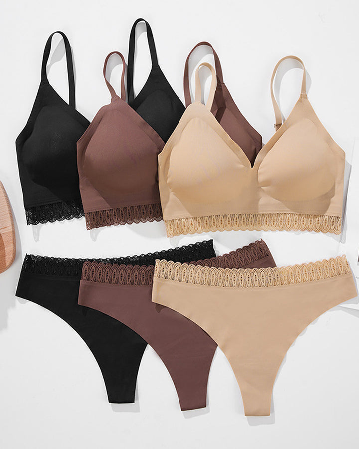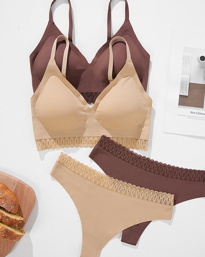 Conjunto de Roupa Interior com Costura em Renda Sexy e Sem Emendas, com Costas Bonitas