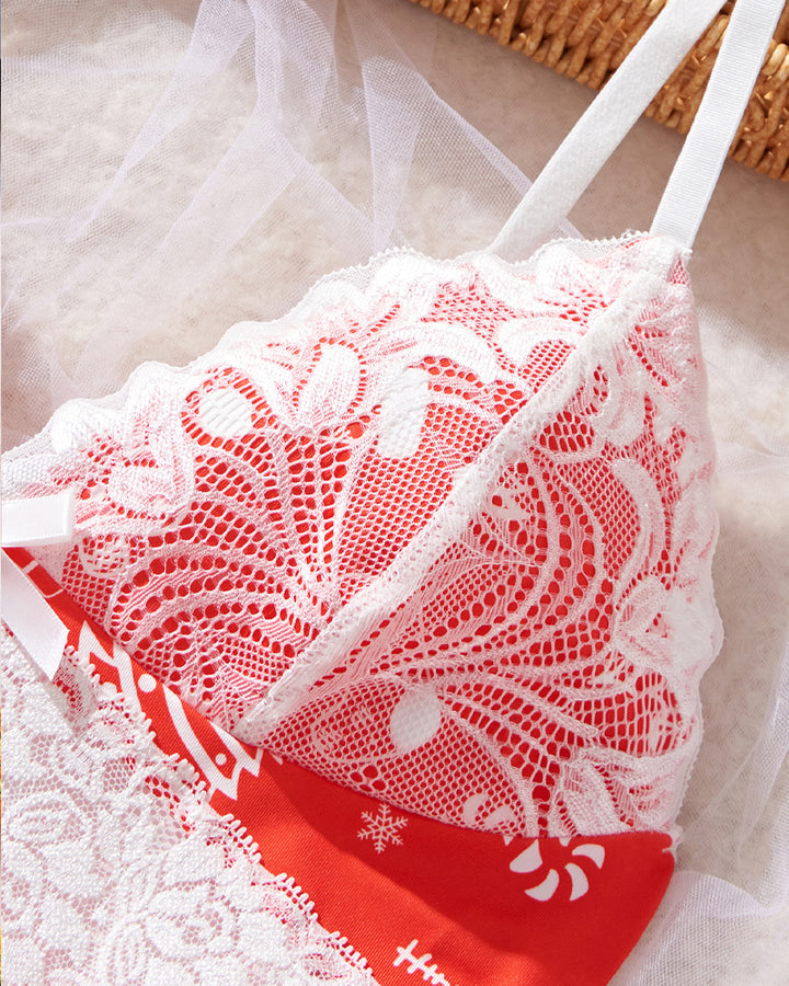 Conjunto de Loungewear com Suspensórios de Renda e Calções com Estampa Sexy de Halloween