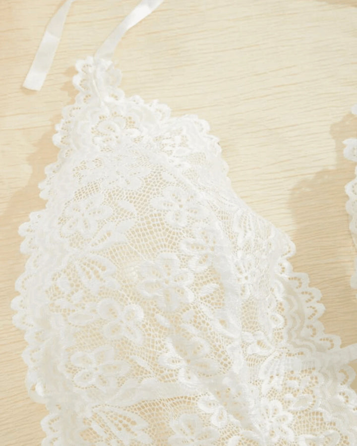 Pijama Sexy de Uma Peça com Renda Vazada Transparente, Alças e Entremeio Aberto