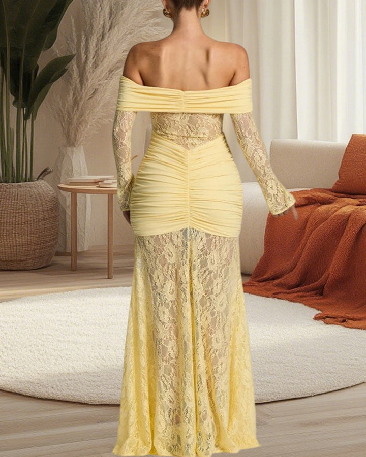 Sexy Lace Off-shoulder Fitted Long-sleeved Fishtail Maxi Dress