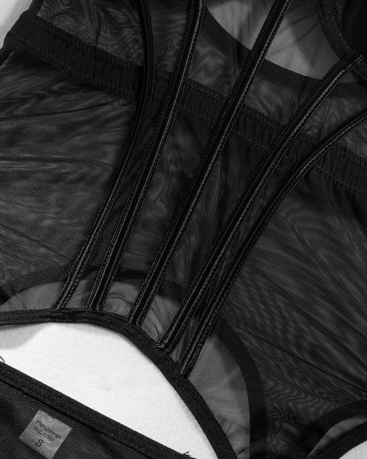 Conjunto Sexy de Malha Respirável Modelador de Corpo com Anel de Aço Dividido e Anel na Perna