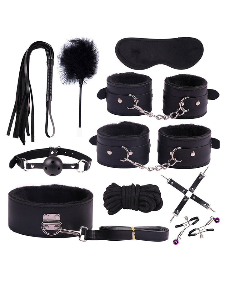 Conjunto de 10 Peças de Bondage em Couro Aveludado Sexy SM