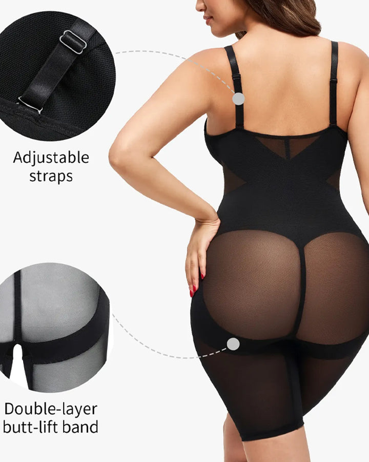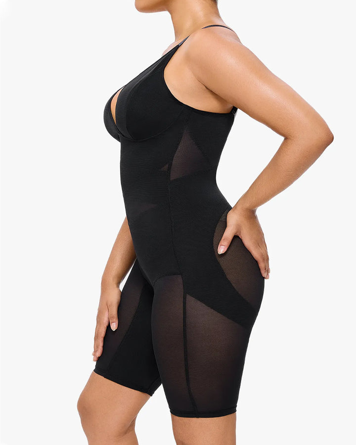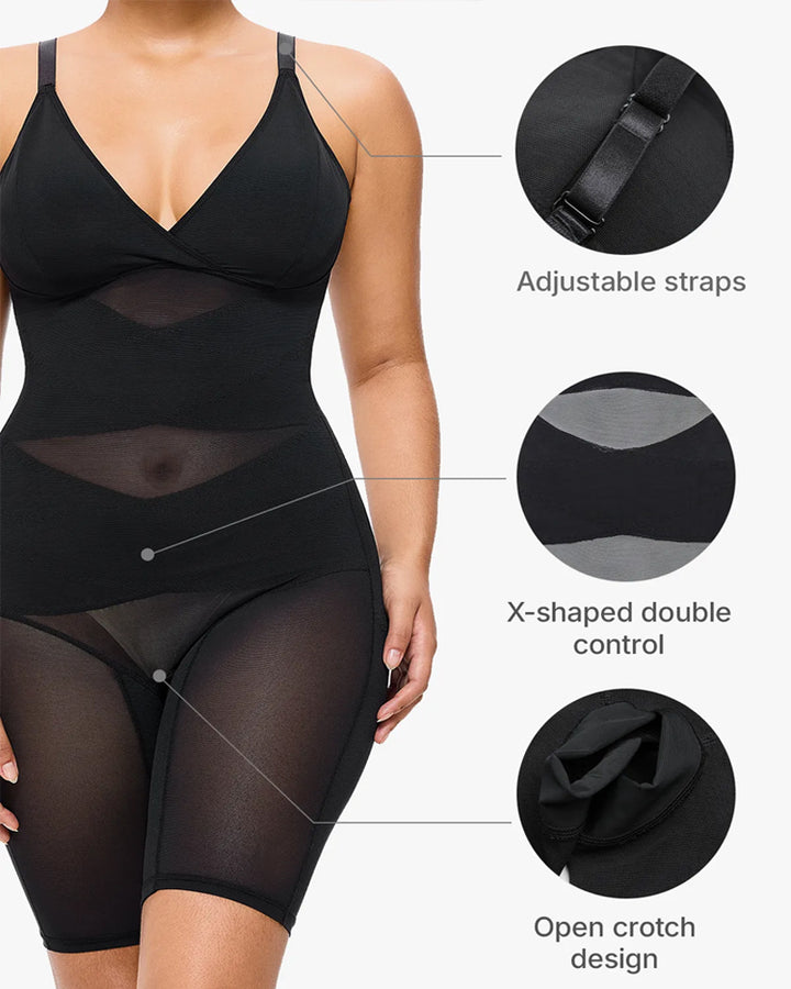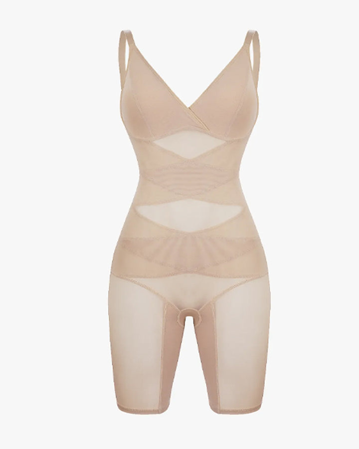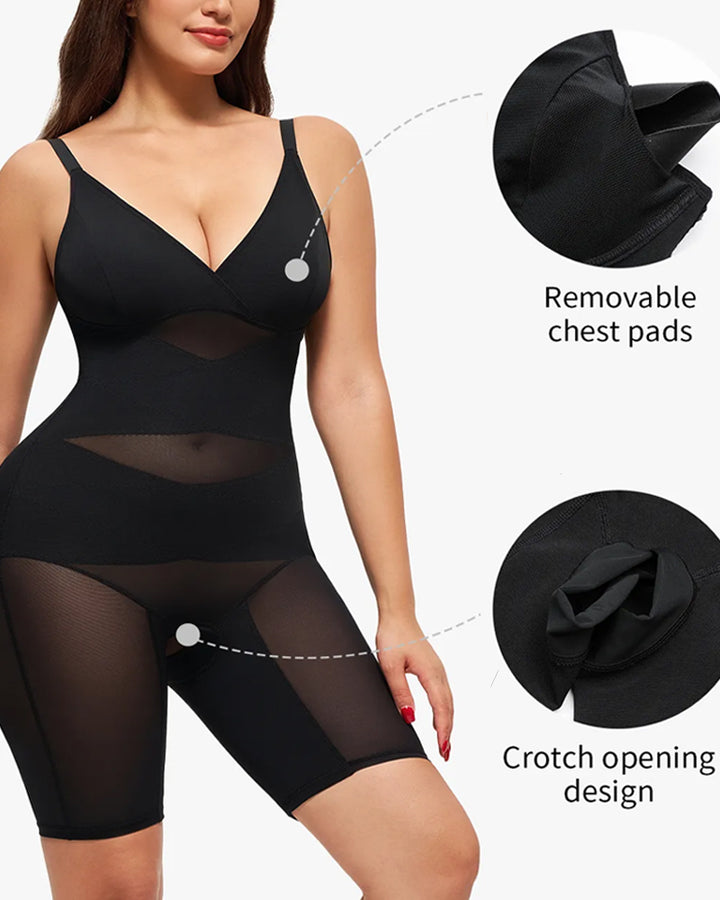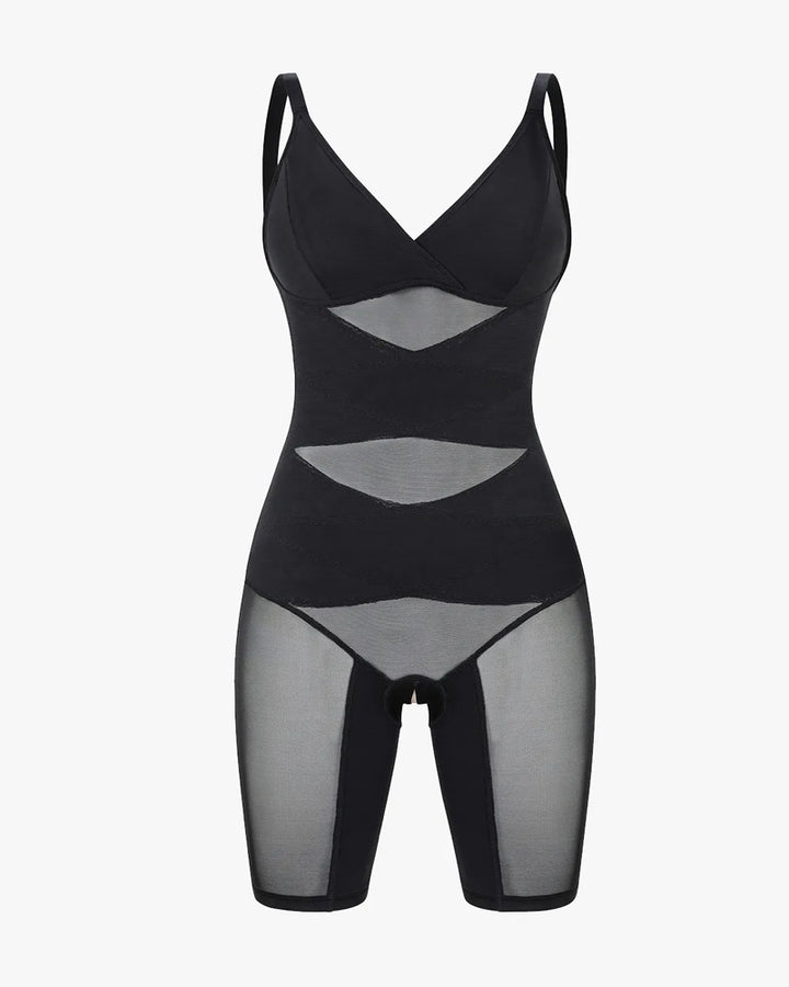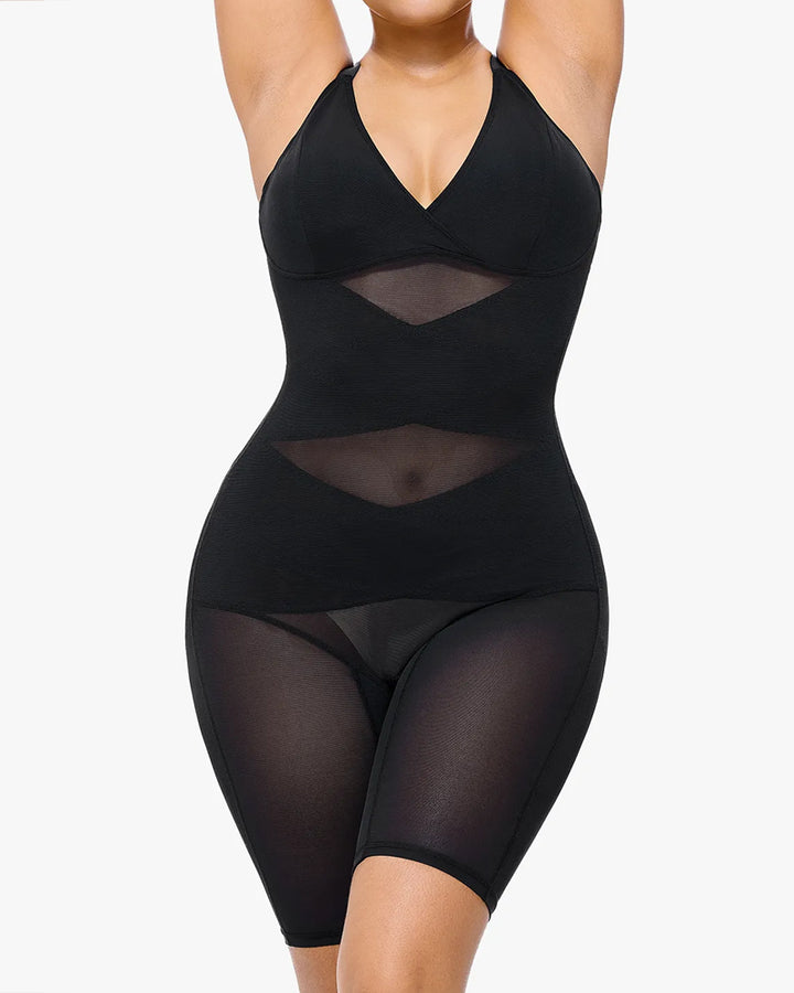 V-neck Mesh-paneled Seamless Tummy Control Hip Lift Bodysuit