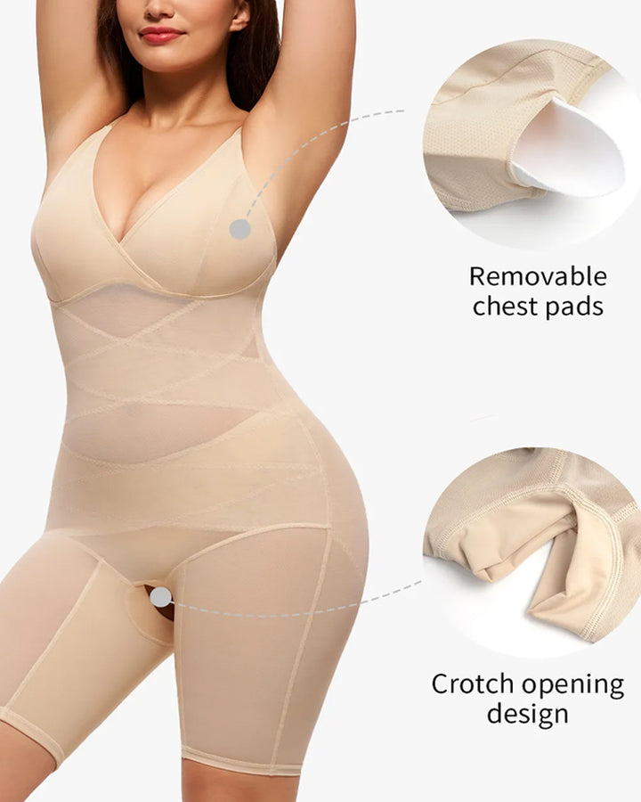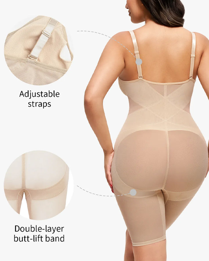 Sculpt a smooth, confident silhouette with this seamless shapewear bodysuit. The adjustable V-neck design and strategic mesh panels enhance breathability while double-layer criss-cross fabric flattens your tummy and lifts your hips. Perfect for everyday wear under outfits, it’s designed to highlight your curves comfortably.