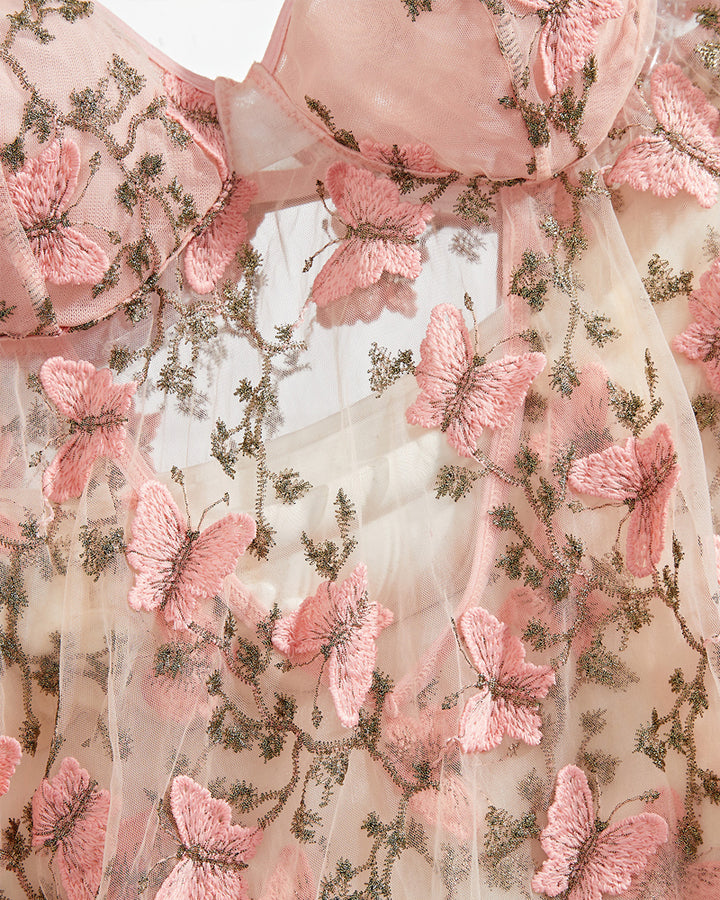 ✔ Detalhes delicados de bordado de borboleta para charme romântico