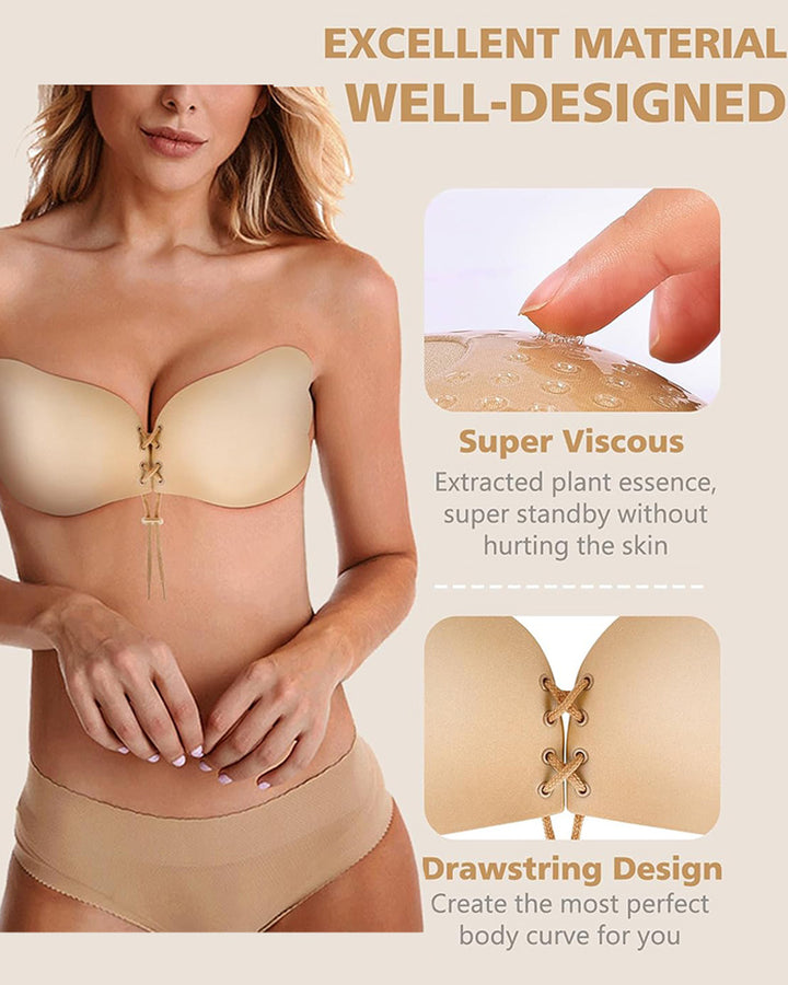 Experimente o conforto e suporte máximos com o nosso Sutiã Adesivo com Arame e Cordão para Mulher, sem alças, desenhado para realçar a sua forma natural enquanto permanece invisível sob qualquer roupa — perfeito para um look confiante e sem costuras!
